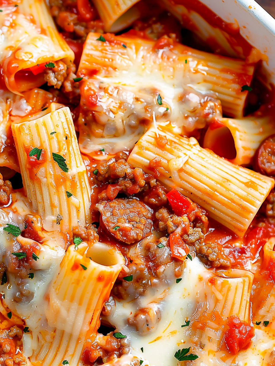 Easy Cheesy Pasta Bake with Sausage and Peppers