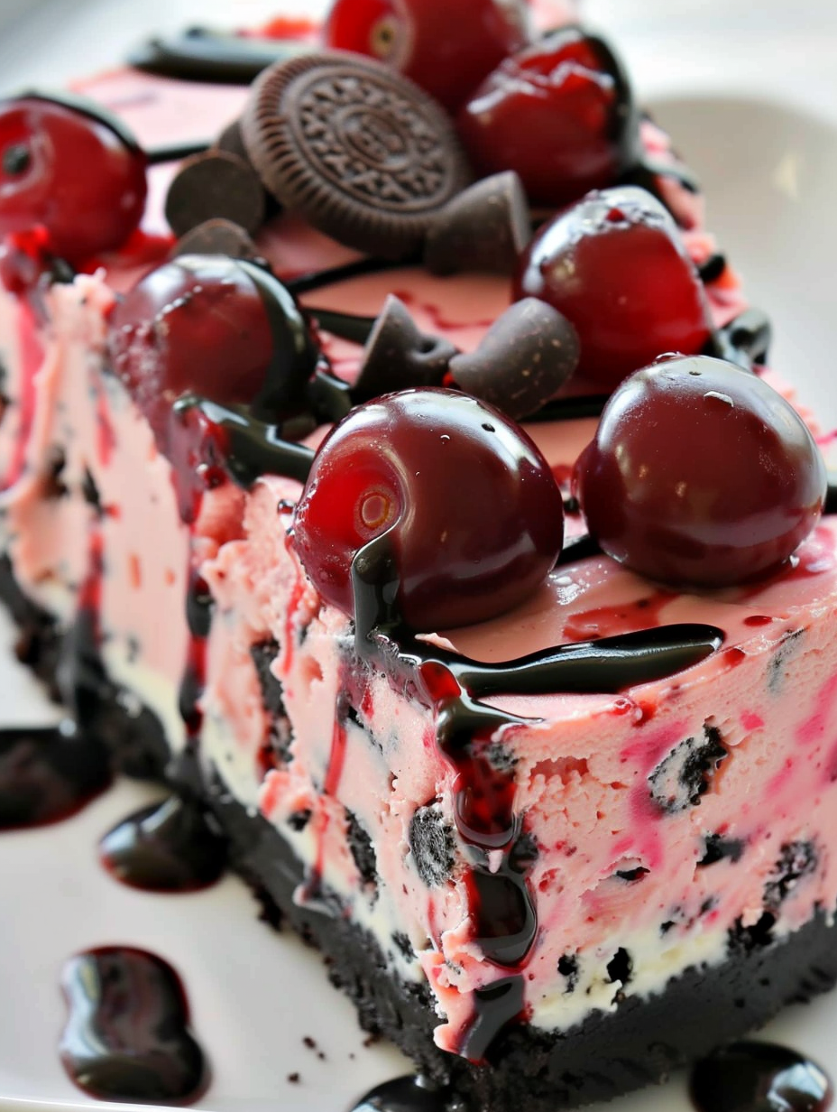 Oreo Cherry Chocolate Chip No Bake Cheesecake