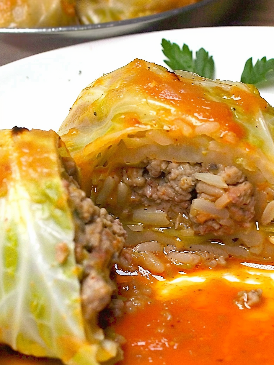 Russian Stuffed Cabbage in Creamy Tomato Sauce