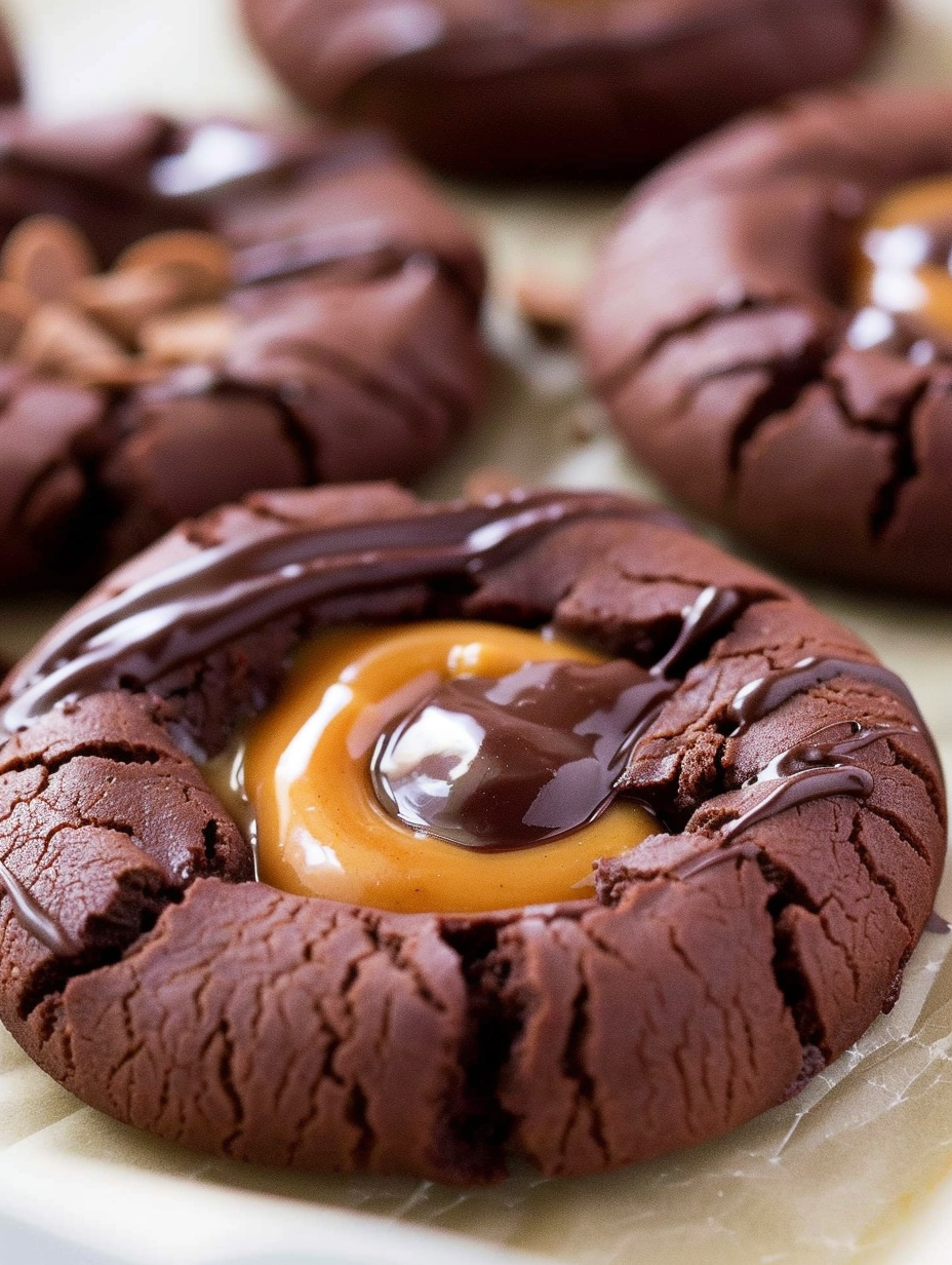 Chocolate Caramel Thumbprint Cookies