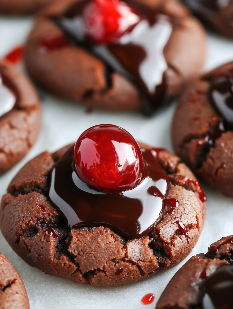 Chocolate Cherry Thumbprint Cookies