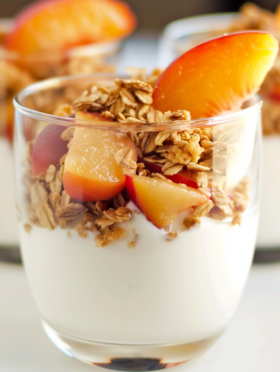 Fresh Peach Granola and Yogurt Parfait