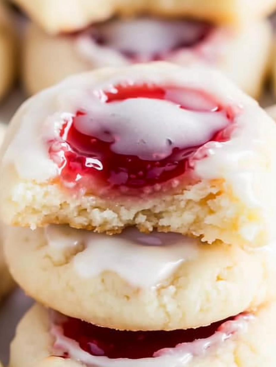 Glazed Strawberry Thumbprint Cookies