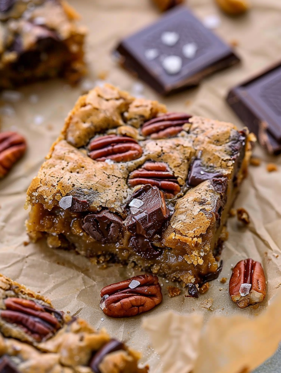 Brown Butter Bourbon Pecan Chocolate Chunk Blondies
