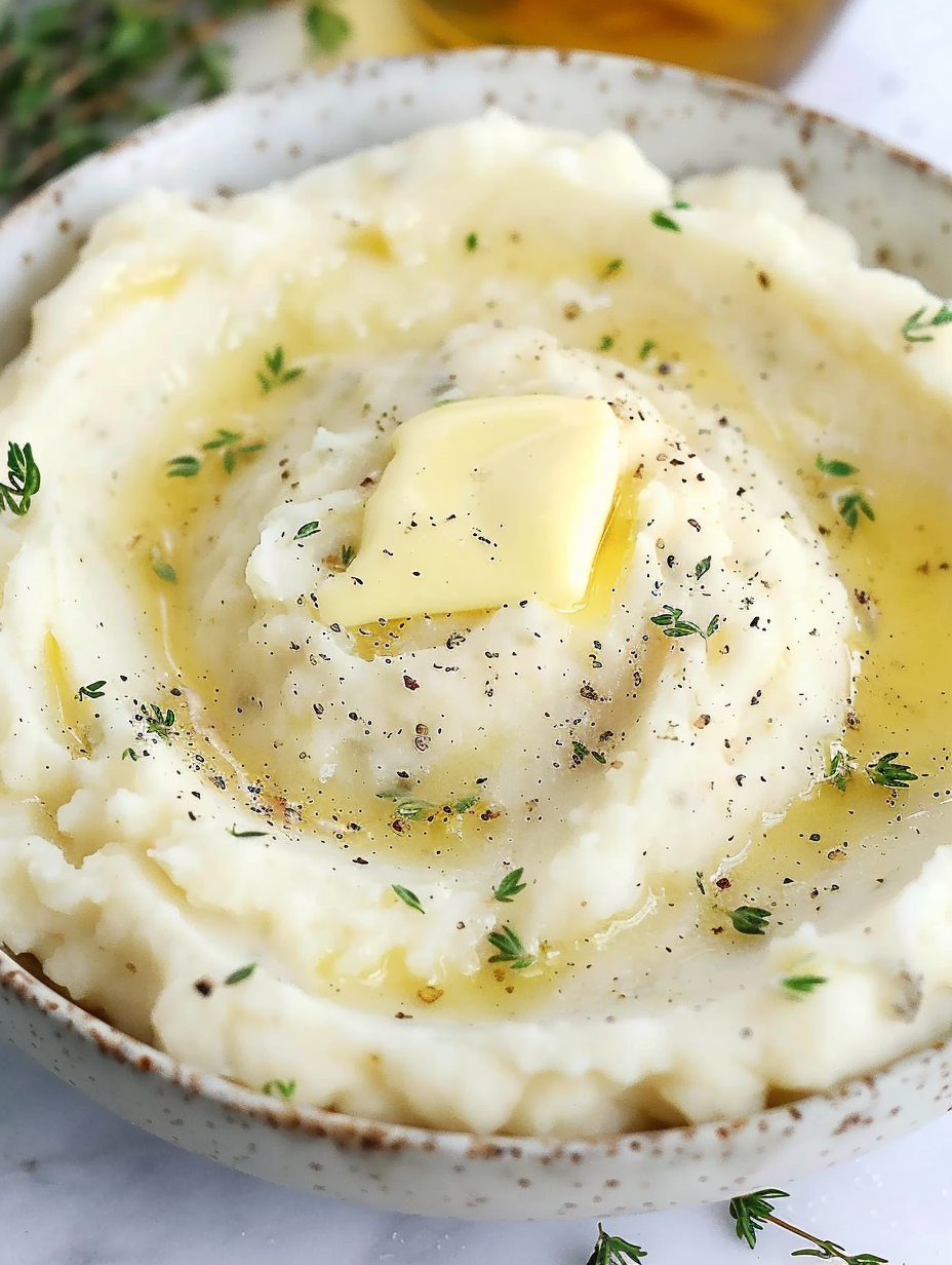 Mashed Cauliflower with Roasted Garlic Butter & Thyme